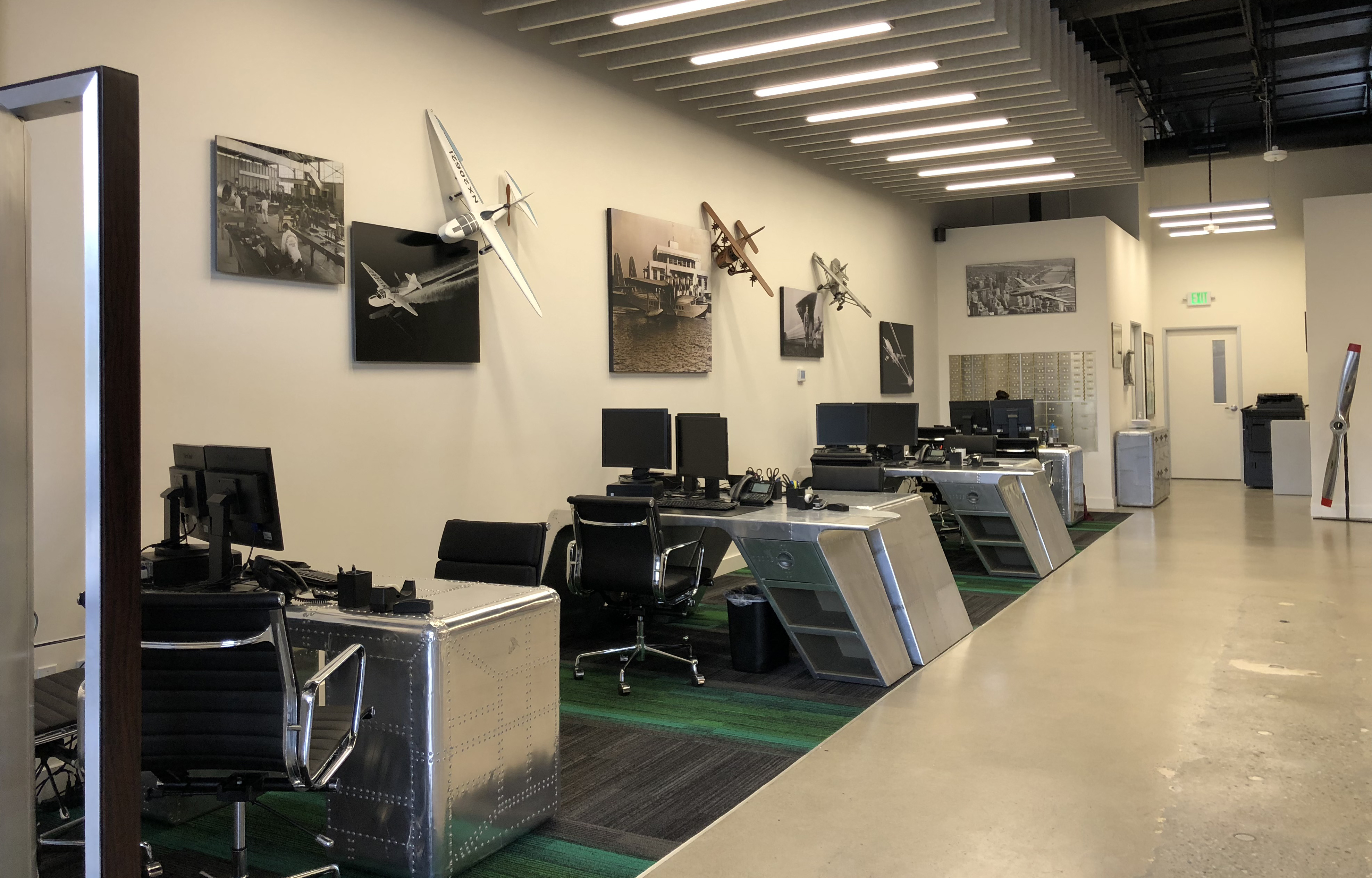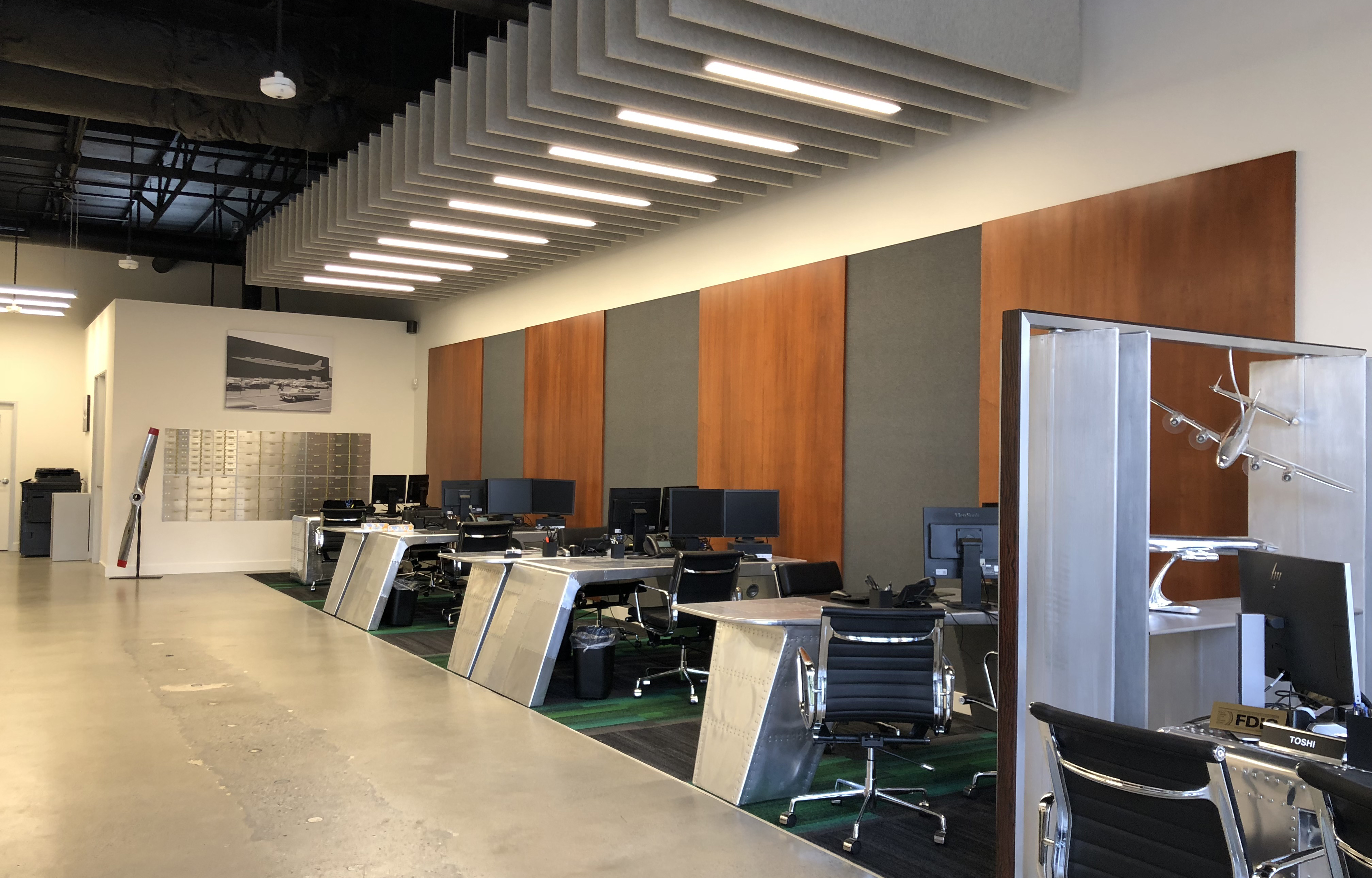 The overall design scheme was inspired by aviation. The concept is to create a premium airport lounge feel by employing the clean lines, a juxtaposition of industrial and warm material palette accompanying with aviation themed art pieces and objects to generate a space where sterling bank customers feel trust, confidence and ready for an enticing journey. Different from the cooperate feel of typical bank interiors, this bank branch is designed to promote the open and art themed spacial experience, to refelct their branding and office culture.