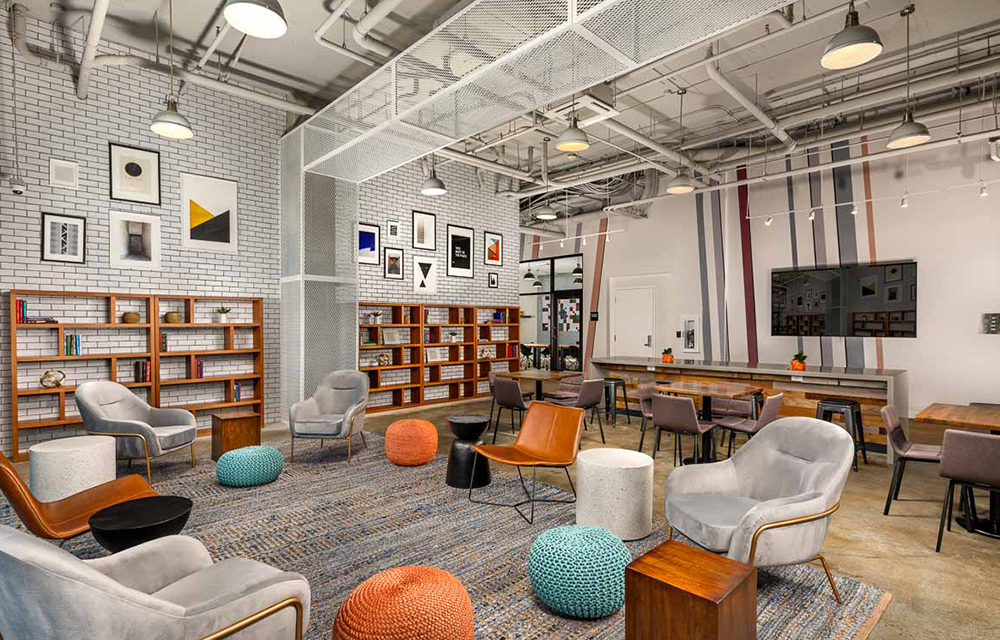 spaces and recreation areas at street level, plus 6 floors of apartmen
