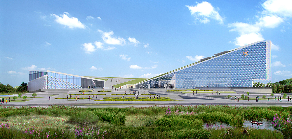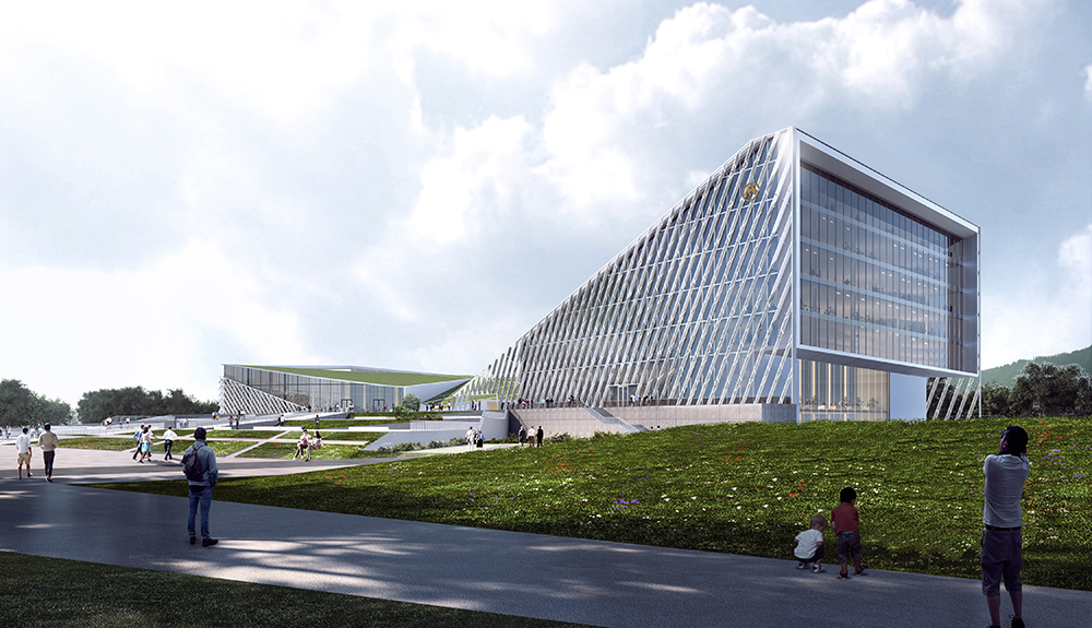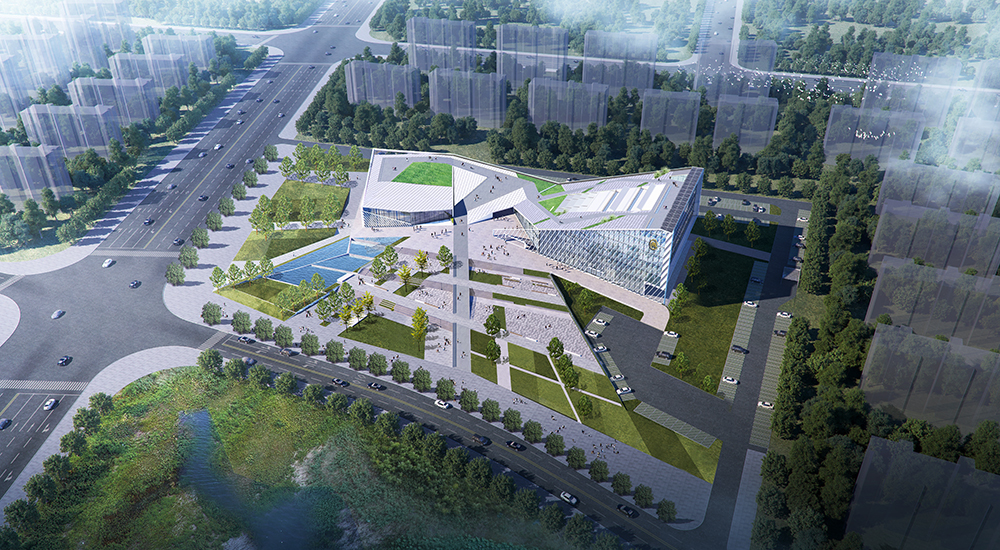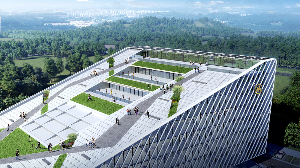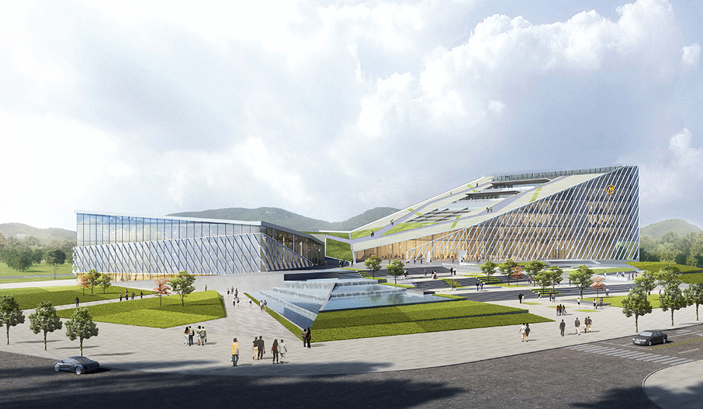 The form of the building is inspired from the ship sailing on the sea, bravely moving forward, which echoes the Shekou spirit of "dare to explore and dare to innovate". As the Taiping Bay innovation Co-operation Zone near the sea, the ocean spirit of setting sail and braving the wind and waves will escort the future development of Taiping Bay New Area together with the Shekou spirit. The architectural shape consists of two functional blocks forming a "V" shape, which represents "Victory". At the same time, an open and inclusive attitude of the building is naturally formed to welcome visitors from all sides. The building adopts the methods of "borrowing scenery" and "frame scenery" in traditional Chinese gardens, and introduces the sight corridors formed by the architectural modeling of Dawang Mountain and Miaoling Mountain in the north of the site into the buildings and squares. Together with the architectural modeling, it forms a profound and far-reaching Chinese landscaping painting.
